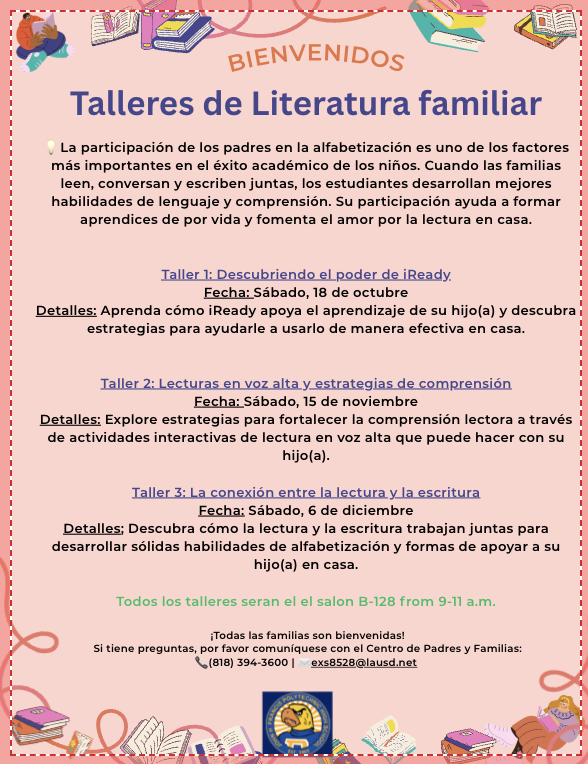 Hello Polytechnic families! Join us this Saturday, October 18 at 9:00 a.m. for our Family Literacy Workshop, “Unlocking the Power of i-Ready.” Learn how to support your child’s learning and discover tips to help them use i-Ready effectively at home. We hope to see you there!