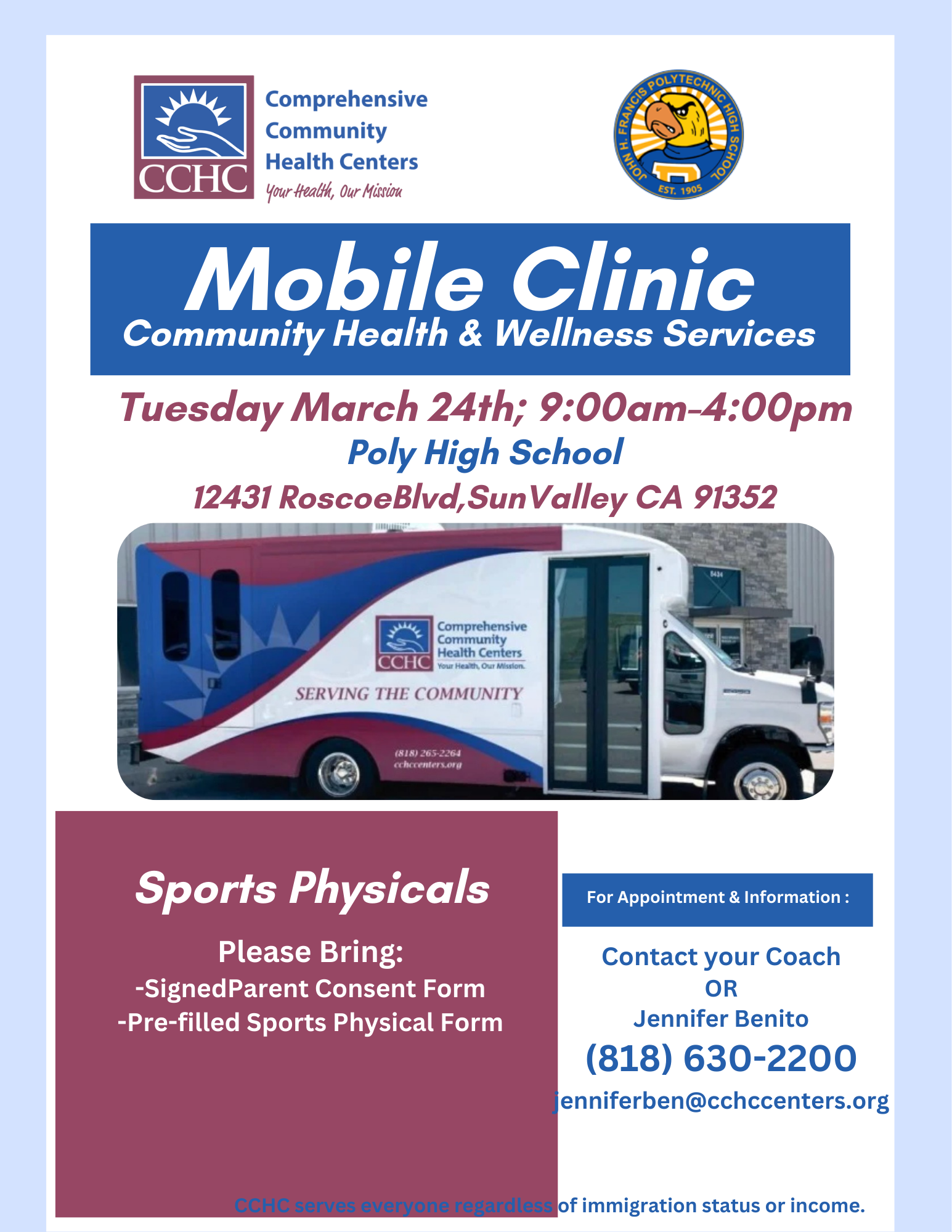 Mobile Clinic - FREE Physicals 3/24/2026 9:00am-4:00pm